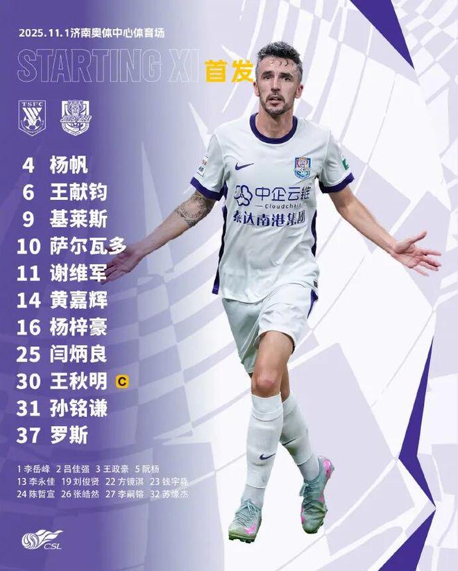 本场比赛,天津津门虎遭遇伤停影响,人员缺失严重。中场主力哈达斯4黄停赛,此外,阿代米、巴顿、石炎、郭皓也都因伤缺席。球队阵型因此有了较大变化:门将闫炳良;三名中卫是王献钧、胡安·罗斯、黄嘉辉;杨梓豪和杨帆分居两个边翼卫;中场方面,王秋明、萨尔瓦多搭档双后腰;前场“三叉戟”左边孙铭谦、右边基莱斯,谢维军居中顶在最前面。替补席上还包括三名门将方镜淇、李岳峰和张皓然。这也反映出,津门虎在人员方面确实没有什么调整的余地了。