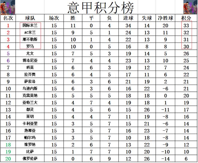 • 意甲最新积分战报榜首竞争激烈!罗马小胜黑马仍差国米3分